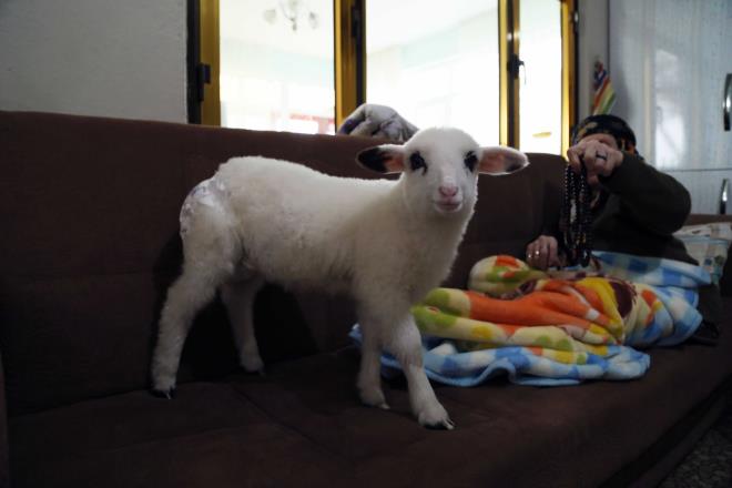 Tatlı Elma Mahallesi'nde yaşayan Eroğlu ailesinin koyunlarından birinin dördüz doğurması ve kuzulardan birinin yeterli beslenememesi üzerine aile yavruyu evlerine aldı.