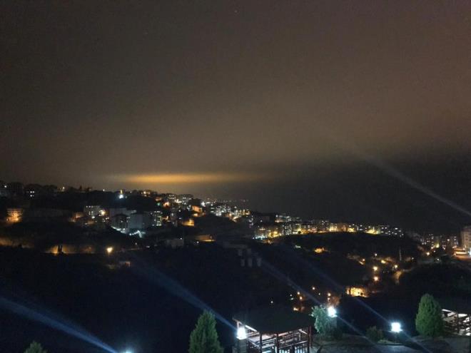 IŞIK VE SİSİN BİRLEŞİMİ : Trabzon'da gecenin konusu olan olay bir doğa yansımasıydı. Gece karanlığında gökyüzüne vuran şehrin ışıkları sis tabakası ile birleşince ortaya böyle yansıma çıkarmıştı.