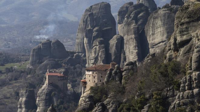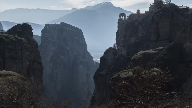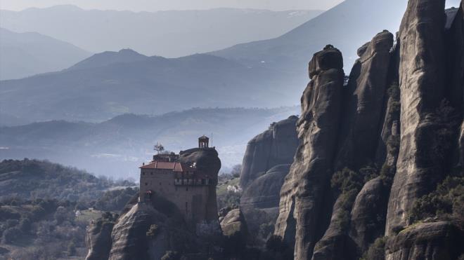 Kayalıkların zirvesine inşa edilen çok sayıda manastırın yer aldığı Yunanistan'ın Trikala Bölgesi'ndeki Meteora kenti, ziyaretçilerin ilgisini çekiyor.