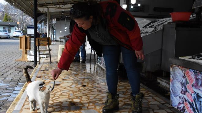 Perşembe ilçesindeki tezgahında balık satışı yapan 44 yaşındaki Yazkan, küçük yaştan bu yana sokak hayvanlarıyla ilgileniyor.