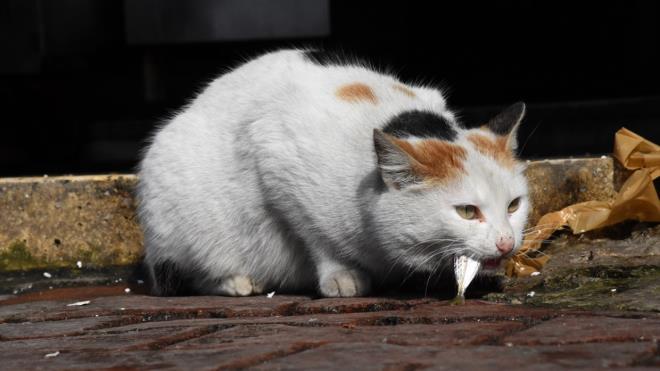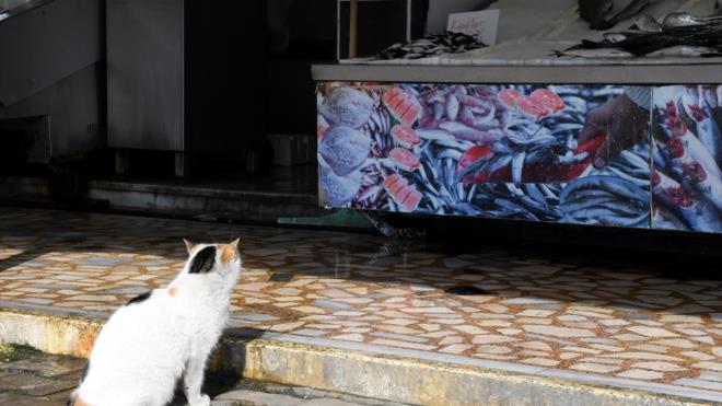 Yazkan, tezgahın bir bölümüne hayvanların severek tükettiği istavrit koyarak "kediler için" yazısı astı.