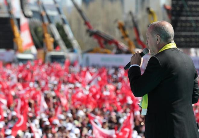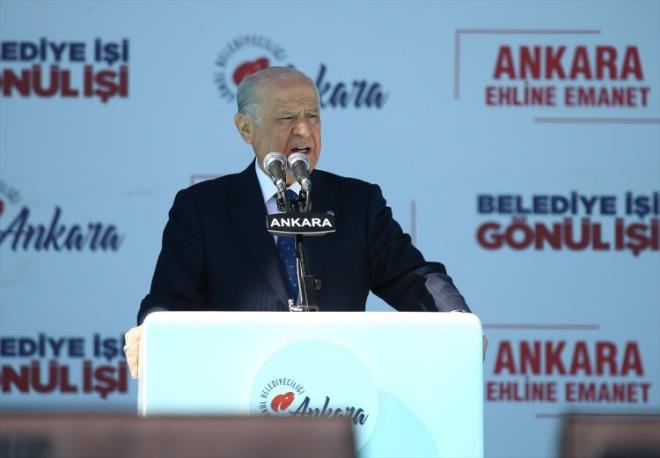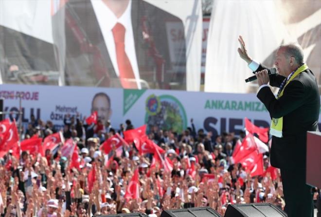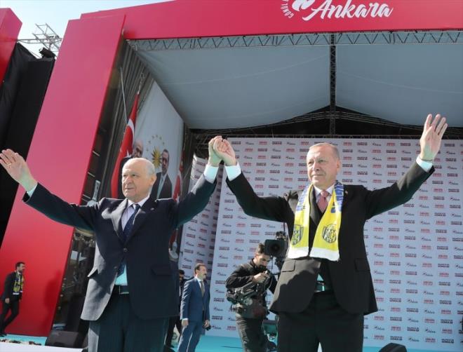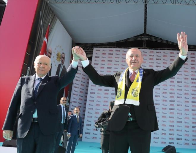 Ankara'ya bağlı 25 ilçeden 450 bin civarında katılımın olduğu mitingde Cumhurbaşkanı Recep Tayyip Erdoğan ile MHP Genel Başkanı Devlet Bahçeli kurulan dev platforma çıktı ve mesajlarını verdi.