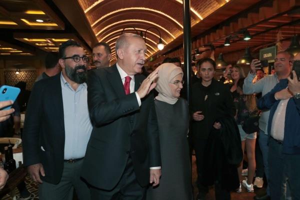 Cumhurbaşkanı Recep Tayyip Erdoğan ile eşi Emine Erdoğan, İstanbul Florya'da bir kafeyi ziyaret etti ve vatandaşlarla sohbet etti.