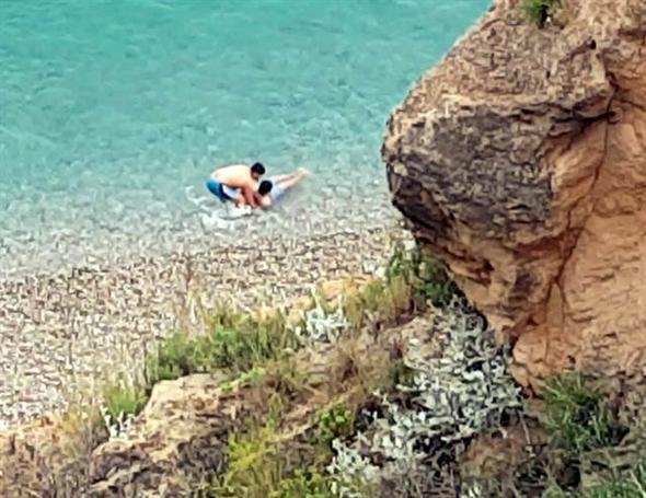 Antalya’da iki gencin ölüm oyunu kameralara yansıdı. Konyaaltı sahilinde elleri ve ayaklarına arkadaşı tarafından plastik kelepçe takılan genç, kayalıklardan atlayıp kıyıya kadar yüzdü.