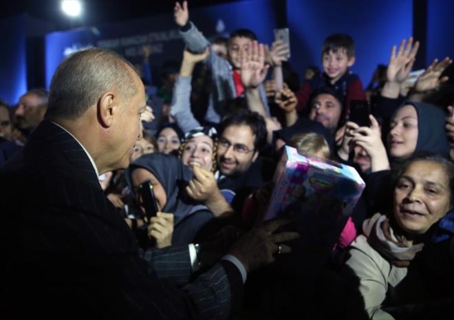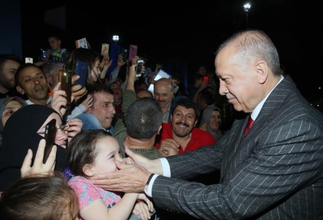 Vatandaşların yoğun ilgisiyle karşılanan Erdoğan, bir süre onlarla sohbet etti, çocuklarla yakından ilgilenip oyuncak hediye etti.