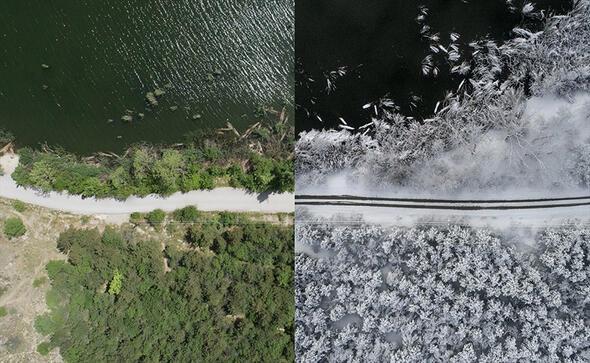 Türkiye'nin farklı coğrafyalarından Anadolu Ajansı (AA) foto muhabirlerince çekilen kuş bakışı fotoğraflarda hem kış hem de yaz mevsimi aynı karede yansıtıldı.
