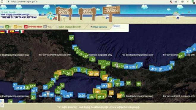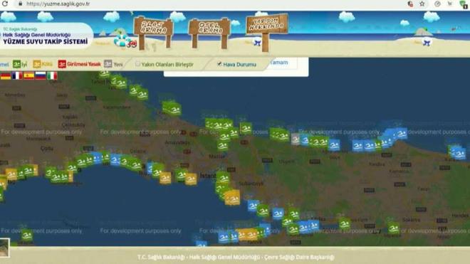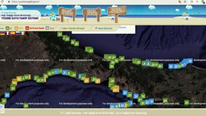 Mükemmel, iyi, kötü ve girilmesi yasak olarak değerlendirilen plajlardaki verilere vatandaşlar yuzme.saglik.gov.tr adresinden ulaşabiliyor.