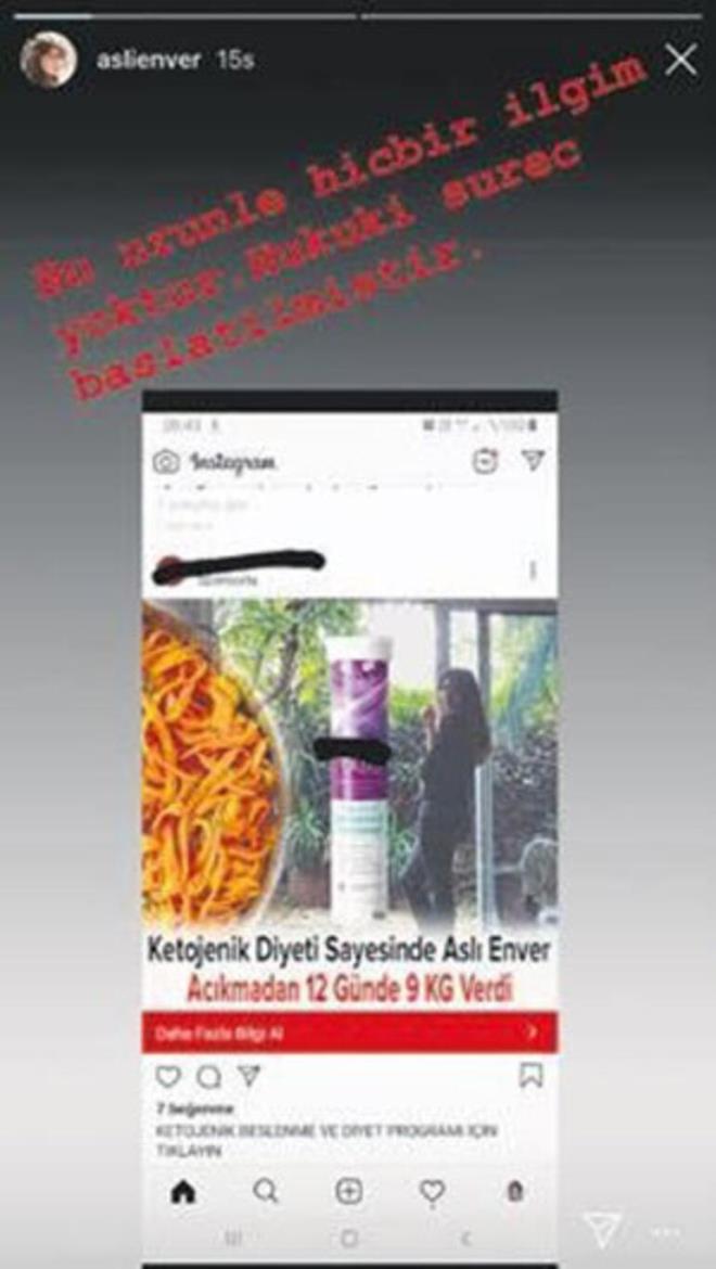 Sosyal medyada adını kullanarak 'ketojenik diyet ürünleri' reklamı yapıldığını gören Aslı Enver, isyan etti.