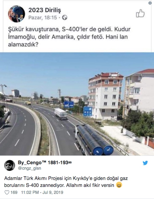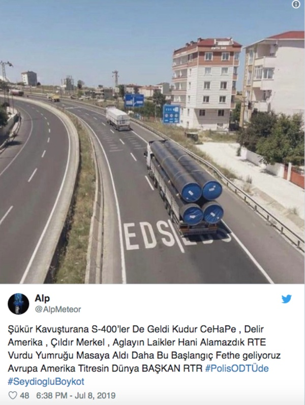 ABD'nin baskı ve yaptırım tehditlerine rağmen, Rusya'dan alınan S-400'lerin Türkiye'ye sevkiyatı devam ederken Türk kullanıcıların sosyal medyada ABD-Türkiye-Rusya ilişkisi ve S-400'lerle ilgili paylaşımları viral oldu.