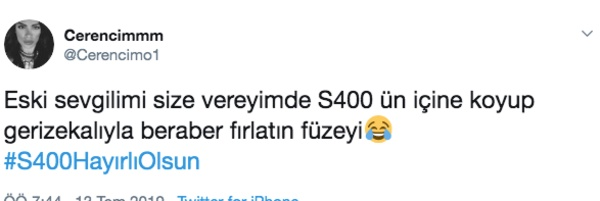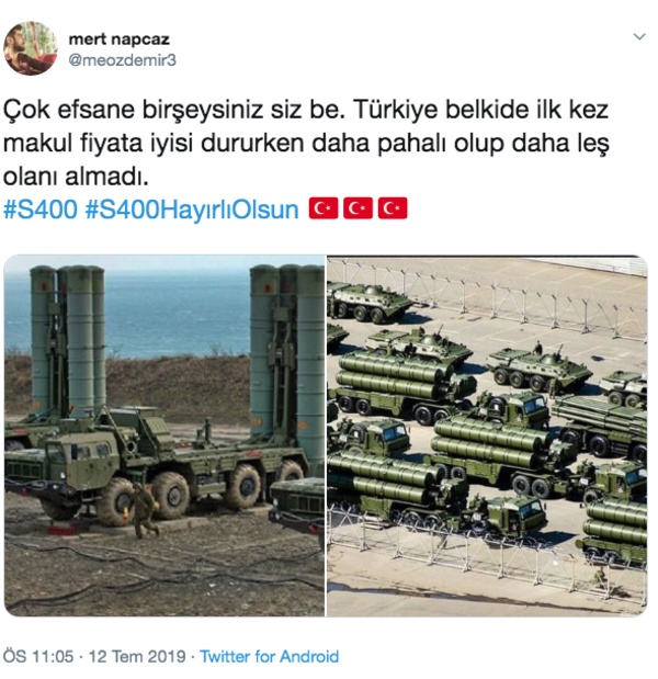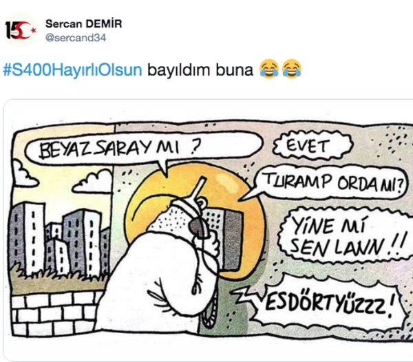 Bu sırada sosyal medyada Türk kullanıcıların esprili ve kinayeli S-400 paylaşımları hem yerel hem uluslarası medyanın dikkatini çekiyor. İşte o paylaşımlardan bazıları: