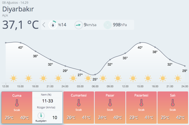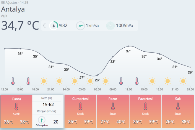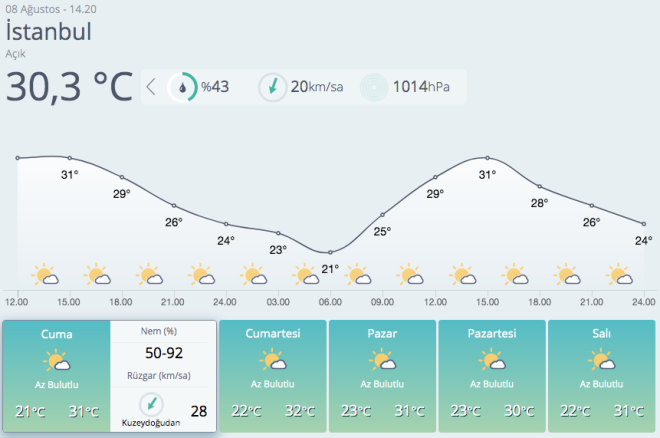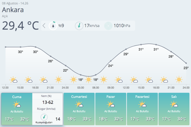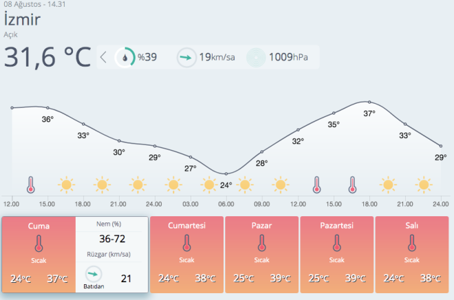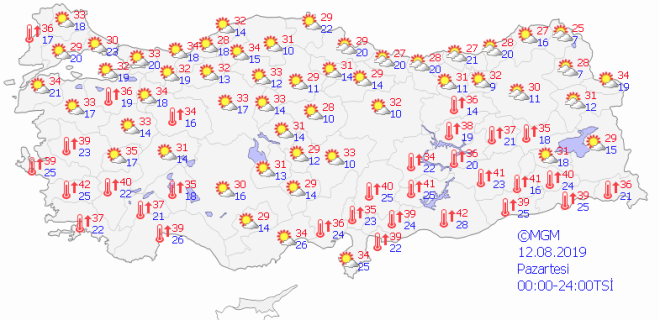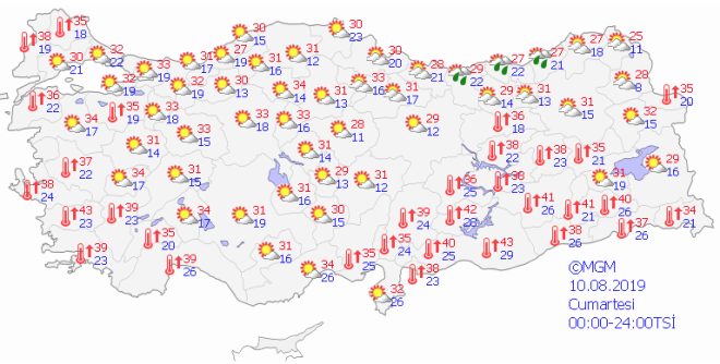 Bayram boyunca en yüksek hava sıcaklığının Ankara'da 32-35, İstanbul'da 30-33, İzmir'de 36-39 dereceler arasında olacağı öngörülüyor.