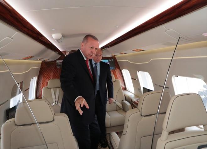 Konuşmanın ardından, Cumhurbaşkanı Recep Tayyip Erdoğan ve Rusya Devlet Başkanı Vladimir Putin MAKS-2019 Air Show'da Su-57 savaş uçağını inceledi.