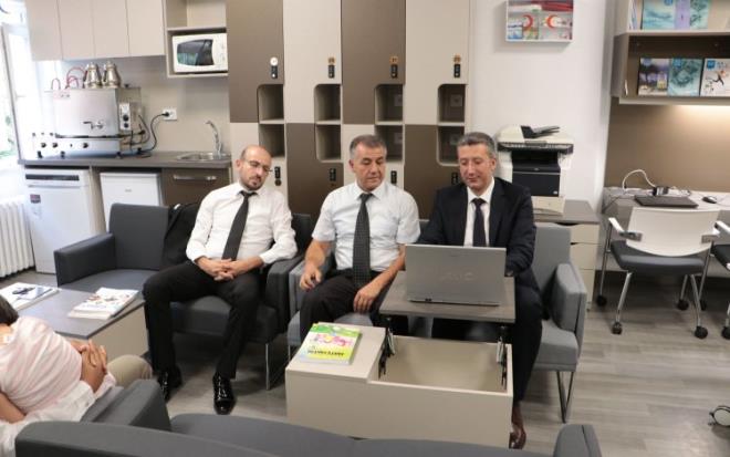 Bakan Selçuk, Milli Eğitim Bakanlığınca bu yaz hazırlıkları tamamlanıp yapımına başlanan yeni öğretmenler odalarının tasarımını Keçiören Yalçın Eskiyapan İlkokulu'nda tanıttı.