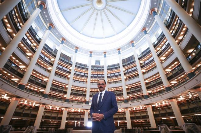 İbrahim Kalın, "Cumhurbaşkanlığı Kütüphanesi hem bizim ilim, kültür, sanat, düşünce mirasımızı yansıtacak hem de dünyanın önde gelen kültür ve medeniyetlerinin temel eserlerini bünyesinde barındıracak. Bu manada Türkiye'nin dünyaya açılan kapısı haline gelecek." değerlendirmesinde bulundu. -