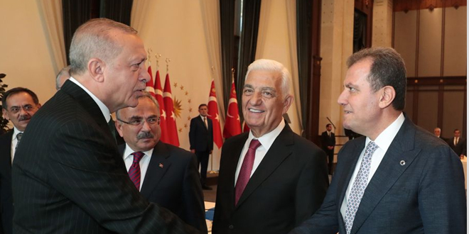 Erdoğan, Ankara Büyükşehir Belediye Başkanı Mansur Yavaş ile de böyle selamlaştı. Beştepe'deki davete 11'ini CHP'li, 1'ini MHP'li toplam 29 büyükşehir belediye başkanı katıldı. Hatay Büyükşehir Belediye Başkanı Lütfü Savaş, mazereti dolayısıyla toplantıya katılamadı.