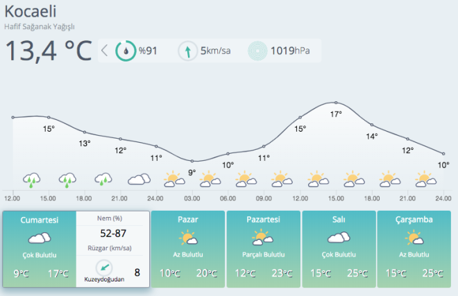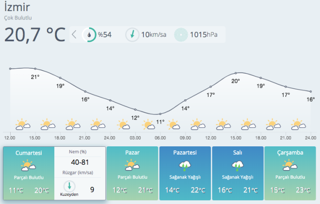 Bugün ve yarın görülecek soğuk ve yağışlı havanın ardından yazdan kalma günler geliyor. Pazar günü yağışlar yurdu tamamen terk edecek. Önümüzdeki hafta ise pastırma sıcakları ile kışa girmeden önce güzel havaların tadını çıkaracağız. İşte bazı illerin 5 günlük hava raporu: -