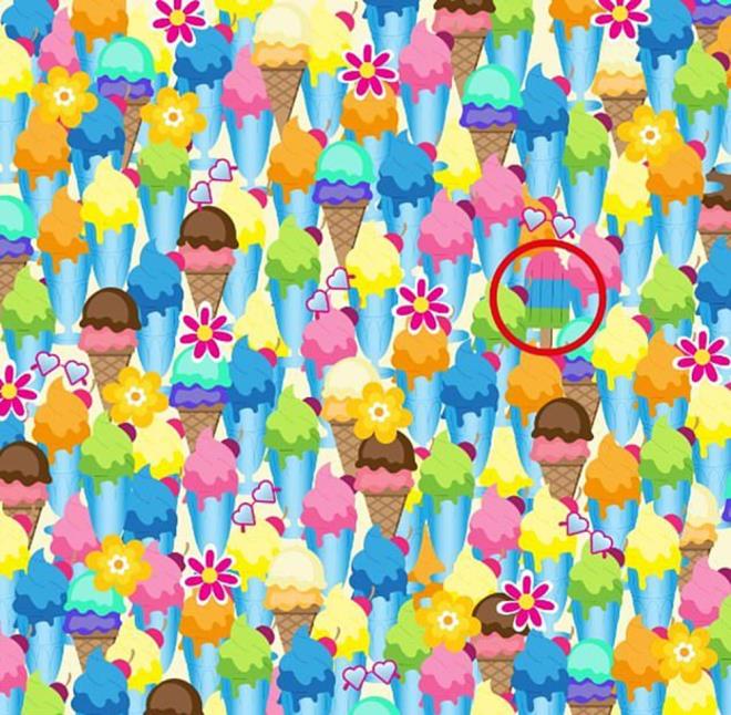 Külah dondurmalar arasından pembe , mavi ve yeşil renkli buz dondurmayı bulun.