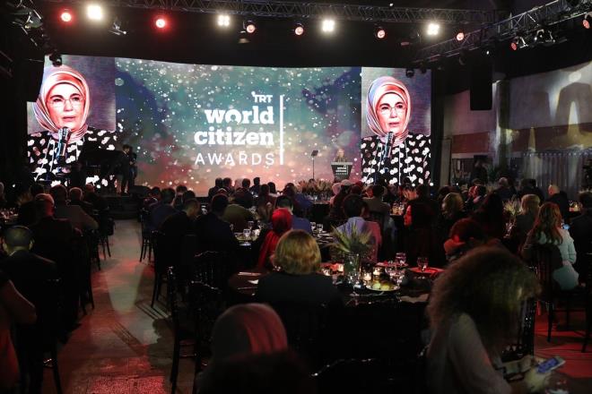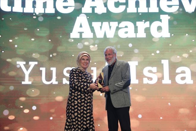 TRT World Citizen tarafından düzenlenen ödül törenine katılan Emine Erdoğan Yusuf İslam?la sohbet eden Haluk Levent'in imdadına yetişti.