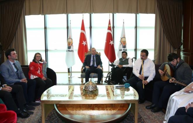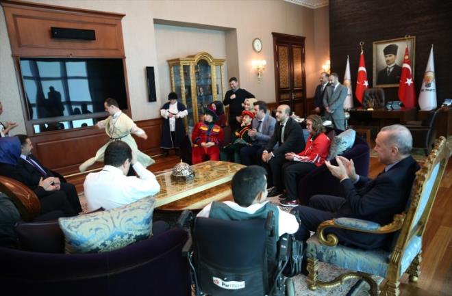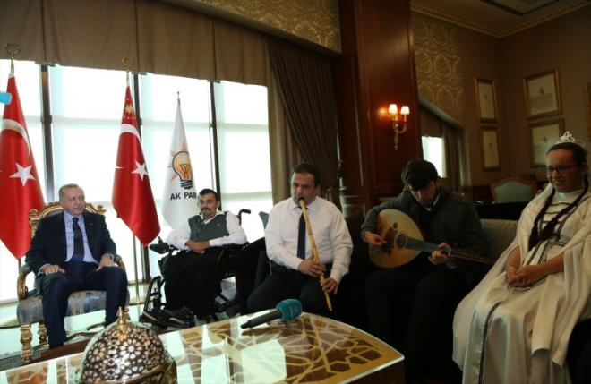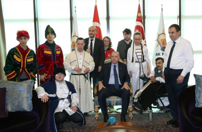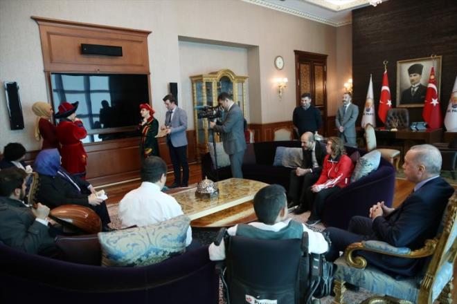 Türkiye Cumhurbaşkanı ve AK Parti Genel Başkanı Recep Tayyip Erdoğan, partisinin genel merkezinde Dünya Engelliler Günü nedeniyle engellileri kabul eti.