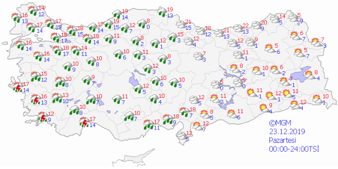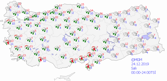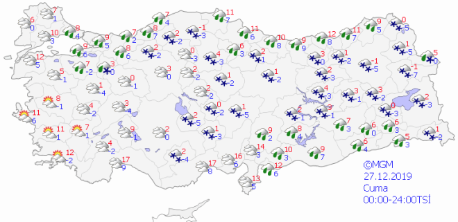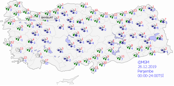 Bu yıl kış hayli gecikti. 2019'un bitmesine sayılı günler kala nihayet etkili bir kar yağışı göreceğiz. Bugün yurdun batı kesimlerinde başlayan şiddetli yağışlar, çarşamba günü sıcaklığın daha da düşmesi ile kar yağışına dönecek. Kar yağışı asıl etkisini perşembeden itibaren gösterecek. Ankara, Kayseri, Kırıkkale, Nevşehir, Bilecik, Kütahya, Eskişehir, Afyonkarahisar, Kastamonu, Karabük, Sivas, Yozgat illerinde yoğun kar yağışı görülecek.