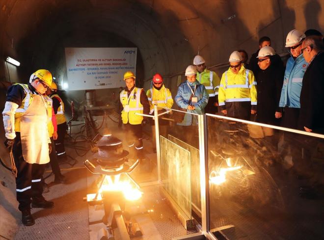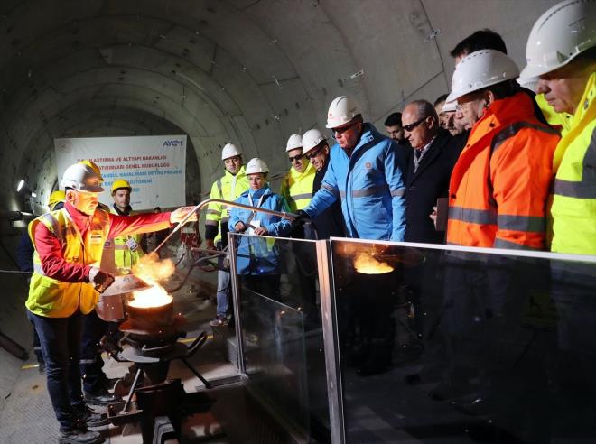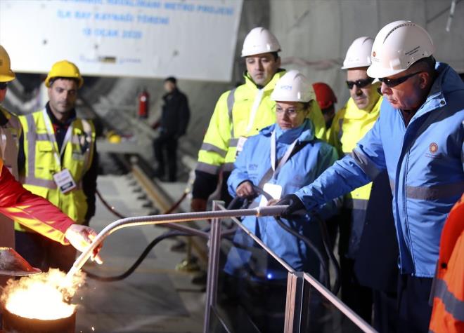 Saate 120 kilometre hızla gidecek metronun ilk ray kaynağını Cumhurbaşkanı Recep Tayyip Erdoğan yaptı.