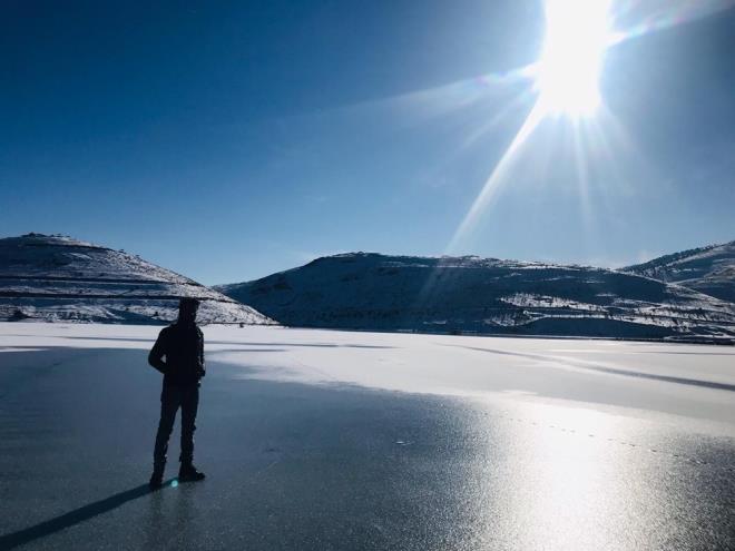 Yurt genelinde etkisini gösteren soğuk hava Bayburt'ta bulunan Gökçedere Gölü'nün donmasına neden oldu. Vatandaşlar donan gölde hatıra fotoğrafı çektirdi.