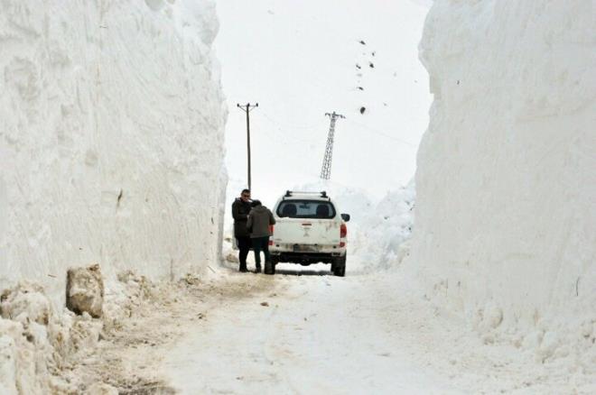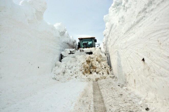 Hakkari'nin Yüksekova ilçesinde yoğun kar yağışı ve tipiye rağmen yollar açılırken bölgede kar kalınlığı 6 metreyi geçti.