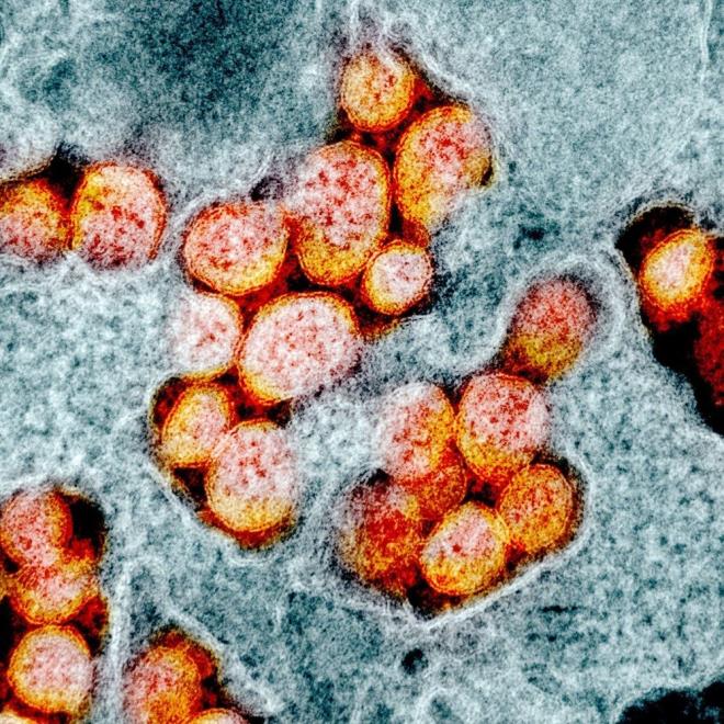 Burada bir tarama elektron mikroskobu altında görülen yuvarlak sarı nesneler, Kovid-19'a neden olan virüsleri gösteriyor.