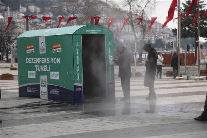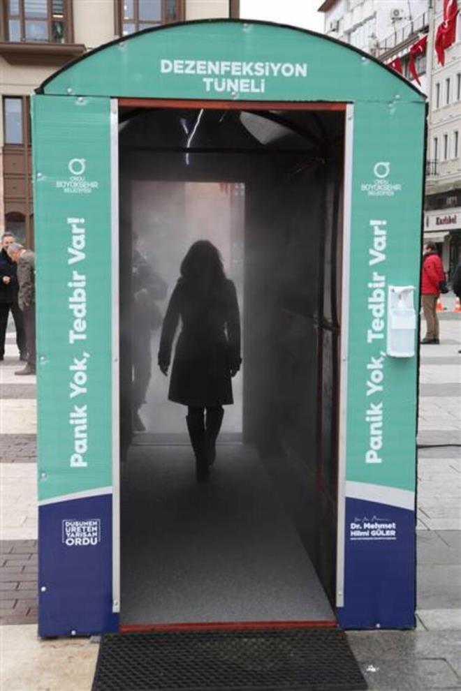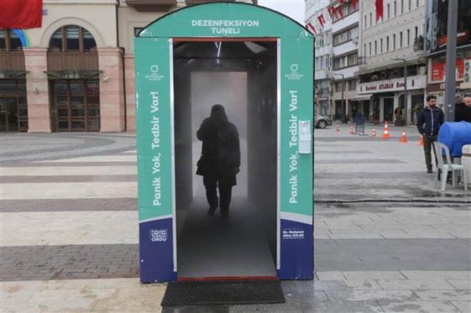 Ordu'da belediye tarafından 'Aircor 52' adı verilen dezenfeksiyon tüneli oluşturuldu. Sokağa çıkmak zorunda kalanların evlerine dönüşleri sırasında içine girdikleri tünelde yayılan özel karışımlı 360 derecelik solüsyon buharı ile kişilerin kıyafetleri üzerindeki olası bakteriler, dezenfekte ediliyor.