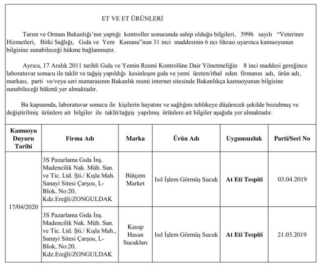 Duyuruda, gıda konusunda kamu otoritesi olan Bakanlığın, yasalarla verilmiş tüm yetkileri tereddütsüz kullanarak gıda güvenilirliğinin sağlanmasına ve tüketicinin korunmasına yönelik çalışmalarını aralıksız ve büyük titizlikle sürdürdüğü vurgulandı.
