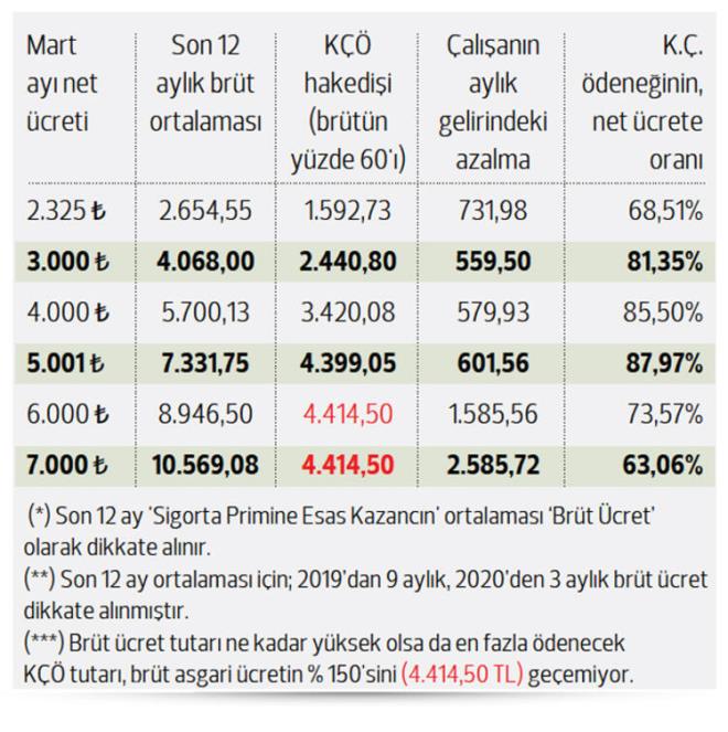 KÇÖ; brütün yüzde 60’ı üzerinden hesaplansa da, çalışanların büyük çoğunluğu için ödenek, net ücretin daha yüksek bir oranına denk geliyor. 3 bin lira net maaşı olan bir çalışan mesela; net maaşının yüzde 81’ni ödenek olarak alabilecek.