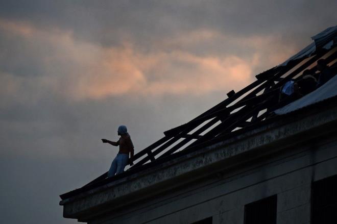 Hapishanenin çatısına çıkan 40'tan fazla mahkum, üzerinde "Hapishanede ölmeyi reddediyoruz" yazılı pankart astı.