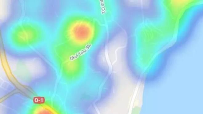 Uygulama, Corona Virüsü testi pozitif olan kişilerin yoğun olarak bulundukları bölgeleri gösteriyor. -