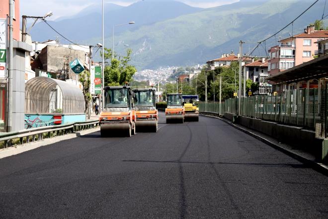 Geçtiğimiz haftalarda yapılan T1, T3 tramvay hatları, Mudanya yolu, Setbaşı, Yeşil ve Gökdere’deki asfalt kaplama çalışmalarının ardından şimdi de Merinos- Acemler arasındaki asfalt, yaklaşık 20 yıl sonra sil baştan yenileniyor.