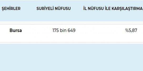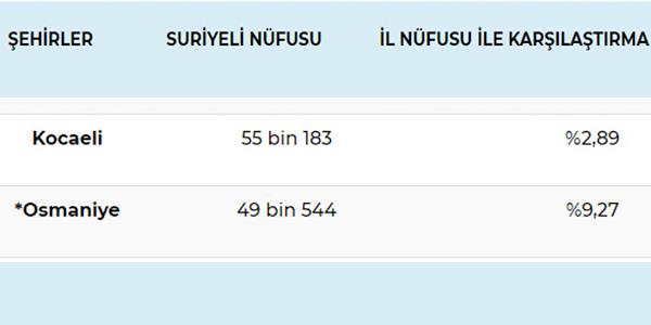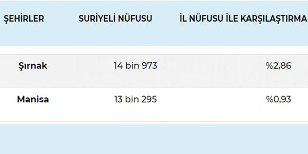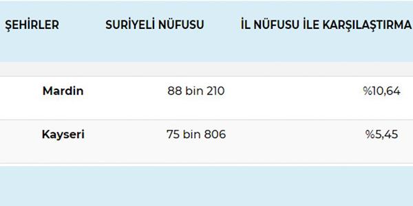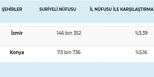 Göç İdaresi'nin 19 Mart 2020 tarihli verilerine göre; en çok Suriyeli barındıran şehir 496 bin 485 kişi ile İstanbul olurken, Ankara'da 96 bin 451 İzmir'de de 146 bin 352 Suriyeli yaşamını sürdürüyor.