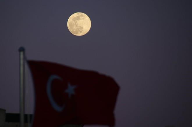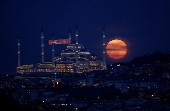 Reuters haber ajansı bu geceye ilişkin karelerde Türkiye'ye de yer verdi. Ajans Çamlıca Camii minarelerinin yanında yükselen Süper Ay fotoğrafını kullandı. -
