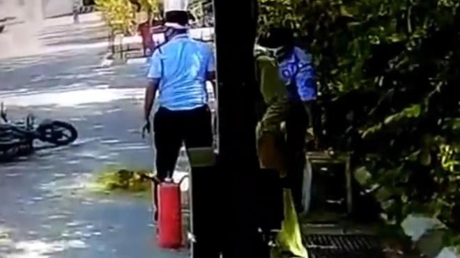 Görgü tanıklardan biri, olayla ilgili yaptığı açıklamada, "Başka bir işçi, daha fazla hasar görmesini önlemek için motosikleti hemen çekti. İşçilerden birinin bir yangın söndürücü kapmak için koştuğunu gördükten sonra gelip ateşe püskürtmeye başladı" dedi.