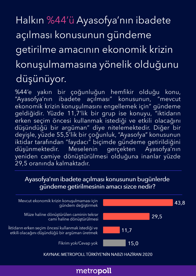 MetroPOLL Araştırma 'Türkiye'nin Nabzı Haziran 2020: Bu Pazar milletvekili seçimi olsa hangi siyasi partiye oy verirsiniz?' anketinden çarpıcı sonuçlar çıktı. Ankete göre, AK Parti ve MHP'de düşüş yaşanıken, 'kararsızlar' üçüncü parti oldu.