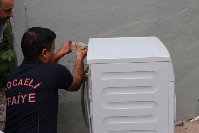 KOCAELİ?nin İzmit ilçesinde yaşlı bir kadının evinde çamaşır makinesine giren 1 metrelik yılanı çıkarmak için itfaiye ekiplerini uzun mücadele etti. Makineyi tamamen söken ekipler, başarılı olamayınca makineye çamaşır suru dökerek yılanı çıkardı.