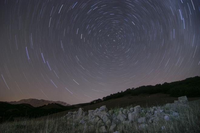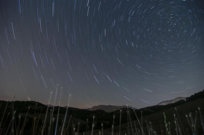 Dünyanın kendi ekseni etrafında dönmesinden yararlanılarak uzun pozlama tekniğiyle çekilen yıldızlar, kutup yıldızı çevresinde oluşturduğu dairesel hareketlerde görsel bir şöleni yansıttı.