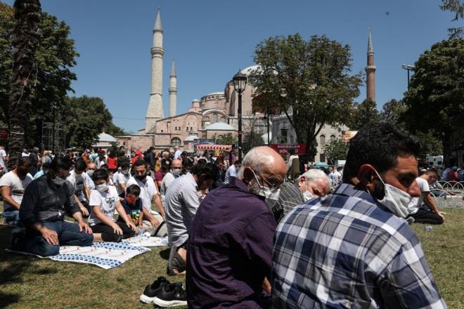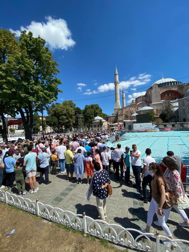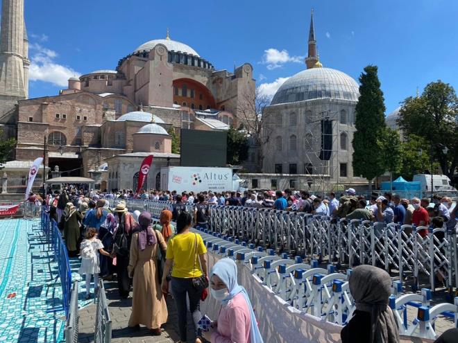 Ayasofya Camii'nin 86 yıl sonra 24 Temmuz günü ibadete açılmasının ardından başlayan ziyaretçi akını bugün de sürdü. Camiye girmek için gelenler uzun kuyruklar oluşturdu. Ziyaretçiler, kadınlar ve erkekler olarak iki gruba ayrıldı. Kadınlar ve erkeklerin oluşturduğu gruplar sırayla içeriye alındı.