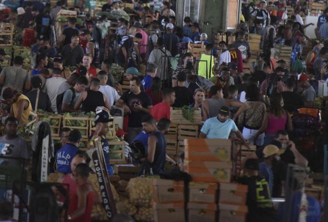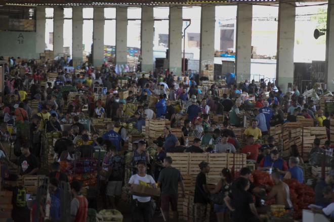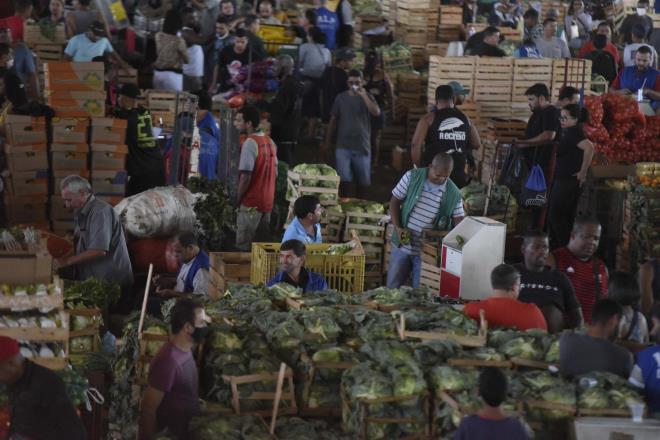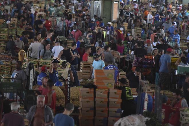 Ölümlerin ve vaka sayılarının artmasına rağmen, Rio de Janeiro kentinde vatandaşlar, ucuz sebze ve meyve satılan pazarlarda önlem almadan yoğunluk oluşturdu.