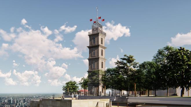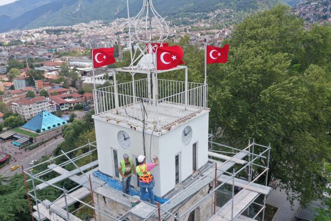 1905 yılında ‘kesme taştan’ inşa edilen 33 metre yüksekliğindeki 6 katlı tarihi Tophane Saat Kulesi, Bursa Büyükşehir Belediyesi’nin başlattığı çalışmalarla eski ihtişamına tekrar kavuşuyor. Ay sonunda çalışmaların biteceği tarihi Saat Kulesi’nin yanına konulacak saat mekanizması da ziyaretçilere görsel şölen yaşatacak