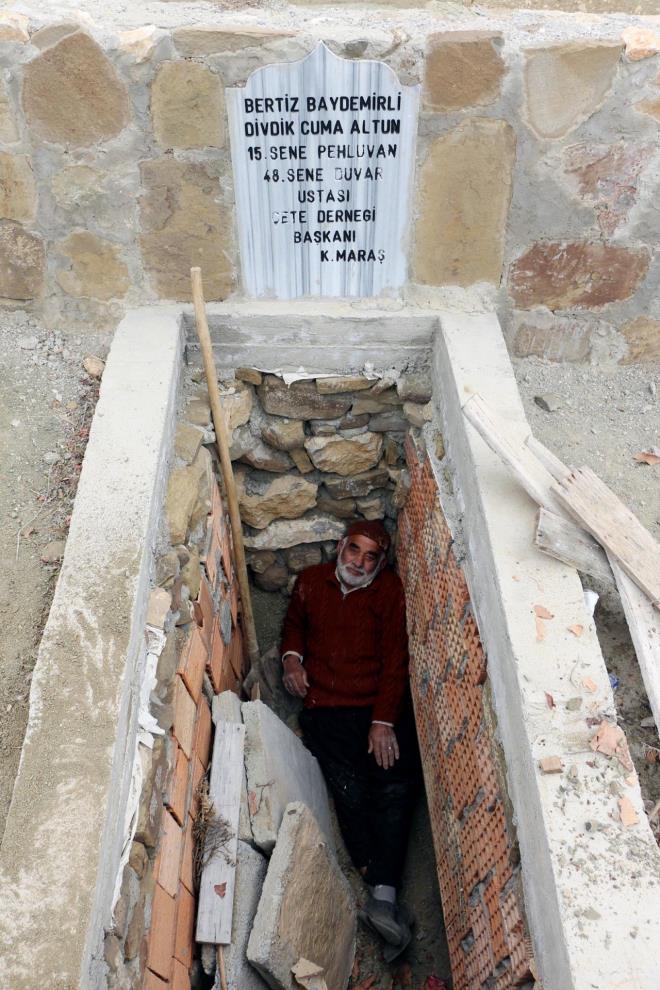 Merkez Dulkadiroğlu ilçesinin Baydemirli Mahallesi'nde yaşayan Cuma Altun, 2005 yılında kendi elleriyle mezarını kazdı. Mezarın etrafını çevirip, üzerinde ismi ile doğum tarihinin yazdığı mezar taşını da diken 48 yıllık duvar ustası Altun, mezarını yapan bir insanın ölümü hatırladığını söylemişti.