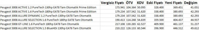 Otomotive gelen Ek ÖTV zam oranlarına bakıldığında yüzde 45 ve 50 olan alt dilimlerde matrah sadece 15 bin TL gibi küçük bir oranda arttırılırken, yüzde 60 dilimi ise yüzde 80'e yükseldi.