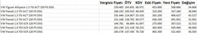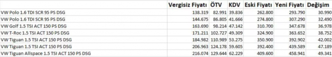 Araç fiyatlarında döviz kurlarındaki artış sonrası başlayan yükselişin ardından ÖTV oranları da yükseldi. En düşük ÖTV oranı yüzde 45 oldu. Cumhurbaşkanlığı kararnamesinde o artışlar kalem kalem açıklandı. Renault, Fiat, Wolksvagan, Peugeot araçların fiyatı kaç lira arttı...