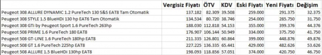 Motor silindir hacmi 1600 cc'yi geçmeyen, ÖTV matrahı 130 bin lirayı aşan otomobiller için ÖTV oranı yüzde 60'tan yüzde 80'e çıkarıldı.