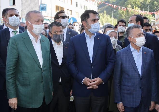 Erdoğan, helikopter ile havalimanından ayrılarak Giresun'a hareket etti.Cumhurbaşkanı Erdoğan, Giresun'da meydana gelen sel felaketi bölgesini havadan inceledi. Erdoğan'a İçişleri Bakanı Süleyman Soylu ve Çevre ve Şehircilik Bakanı Murat Kurum brifing verdi.