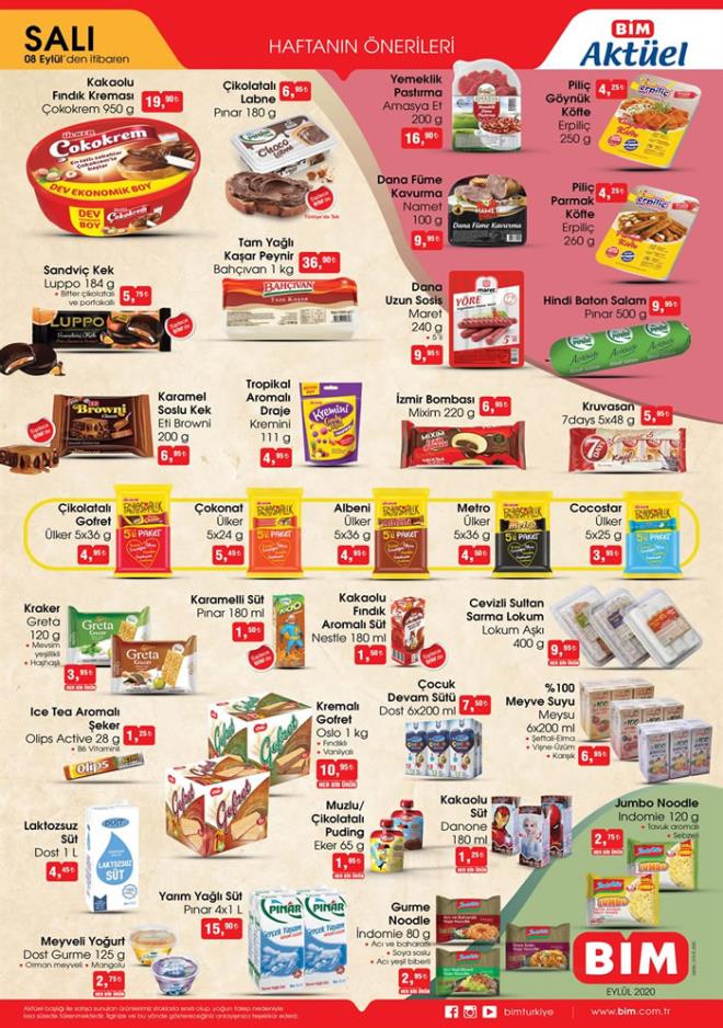 BİM 15 Eylül 2020 Salı gününe kadar geçerli olacak; BİM 8 Eylül 2020 haftanın önerileri kampanyasını yayınladı.