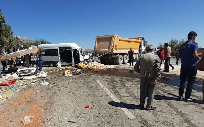 ADIYAMAN'da yolcu minibüsü hafriyat kamyonuna çarptı. Korkunç kazada 1 kişi öldü, 19 kişi yaralandı. Yaralılardan 2'sinin durumunun ağır olduğu bilgisine ulaşıldı.